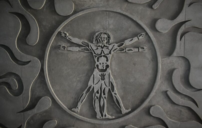 „Vitruvijaus žmogus“ iš dalies įkvėptas romėnų architekto Vitruvijaus raštų. Vitruvijus teigė, kad tobulas žmogaus kūnas turėtų tilpti ir į apskritimą, ir į kvadratą.