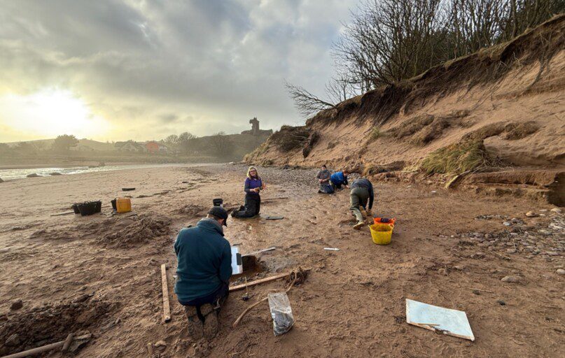 Vėjuotoje Lunan Bay pakrantėje Škotijoje pastarosiomis savaitėmis įvyko neeilinis atradimas. Jūra trumpam atvėrė maždaug dviejų tūkstančių metų senumo žmonių istorijos fragmentą, kurį netrukus vėl paslėpė smėlis ir bangos. Laimei, tuo metu netoliese buvo vietos gyventojų, išėjusių pasivaikščioti su šunimis, ir jie spėjo viską užfiksuoti.
