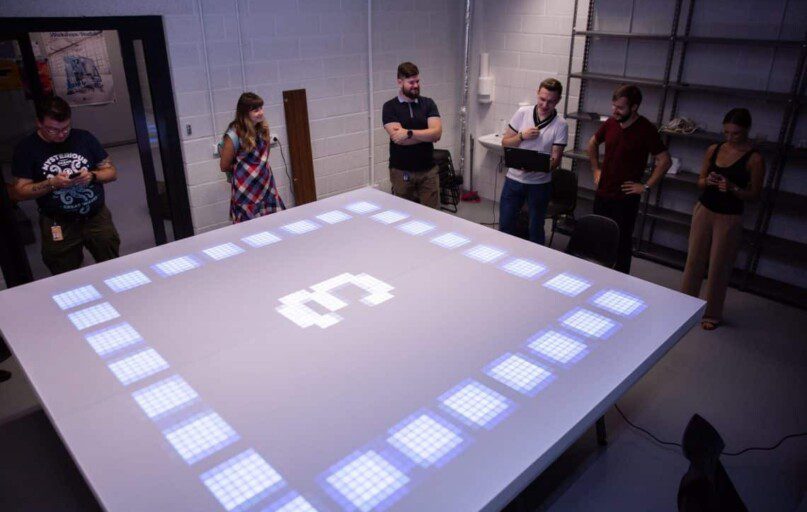Nestandartinio interaktyvaus ekrano idėją sugalvoję „Danske Bank“ IT grupės darbuotojai jos įgyvendinimą nusprendė patikėti Vilniaus Gedimino technikos universiteto (VGTU) „LinkMenų fabriko“ specialistams ir studentams. Šie visiškai naują gaminį suprojektavo ir pagamino vos per tris mėnesius, įrodę, kad verslo ir mokslo bendradarbiavimas nėra tik tušti žodžiai.