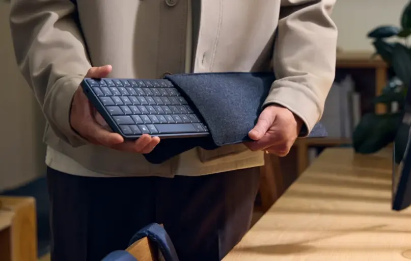 Visa sistema sveria tik apie 750 gramų, o korpuso storis siekia maždaug 12 mm. Tai daro įrenginį itin kompaktišku ir patogiu transportuoti – faktiškai ne sunkesnį ir ne storesnį už daugelį įprastų biuro klaviatūrų.