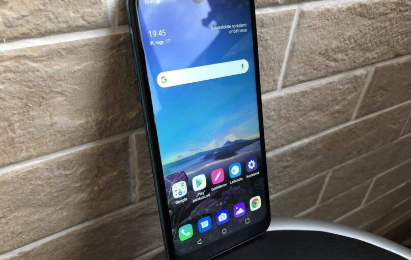 Kaip jau supratote, „LG Q60” matricos kokybė tikrai nėra stiprioji prelegento pusė. Vis dėlto tai dalinai kompensuojama modernia ekrano forma. Išpjova priekinei kamerai ir užapvalinti ekrano kampai atrodo išties inovatyviai ir netgi šiek tiek primena flagmanus. Na, galėtų priminti dar labiau, jei gamintojas būtų bent jau šiek tiek sumažinęs rėmelius, ypač apatinįjį.
