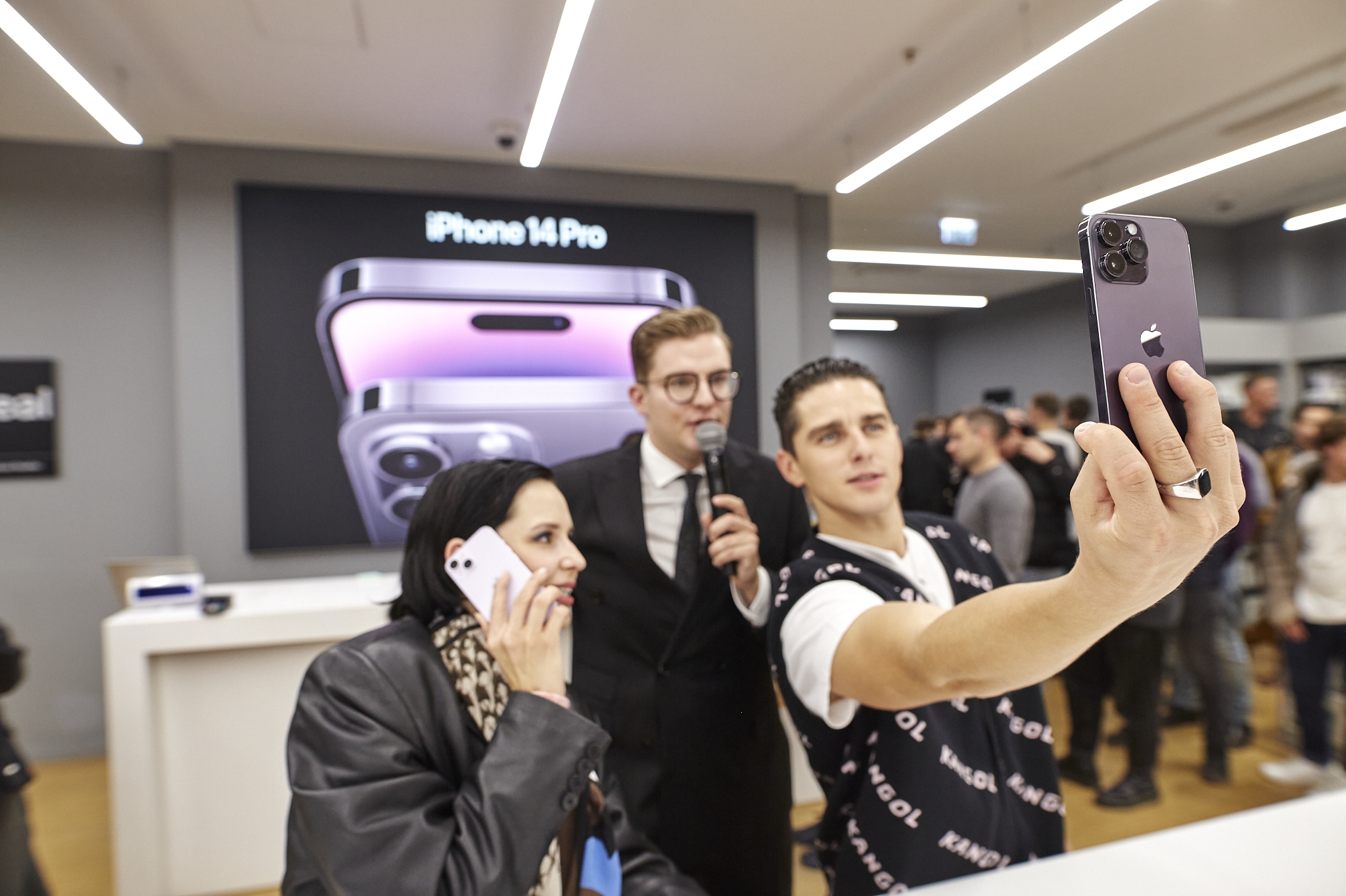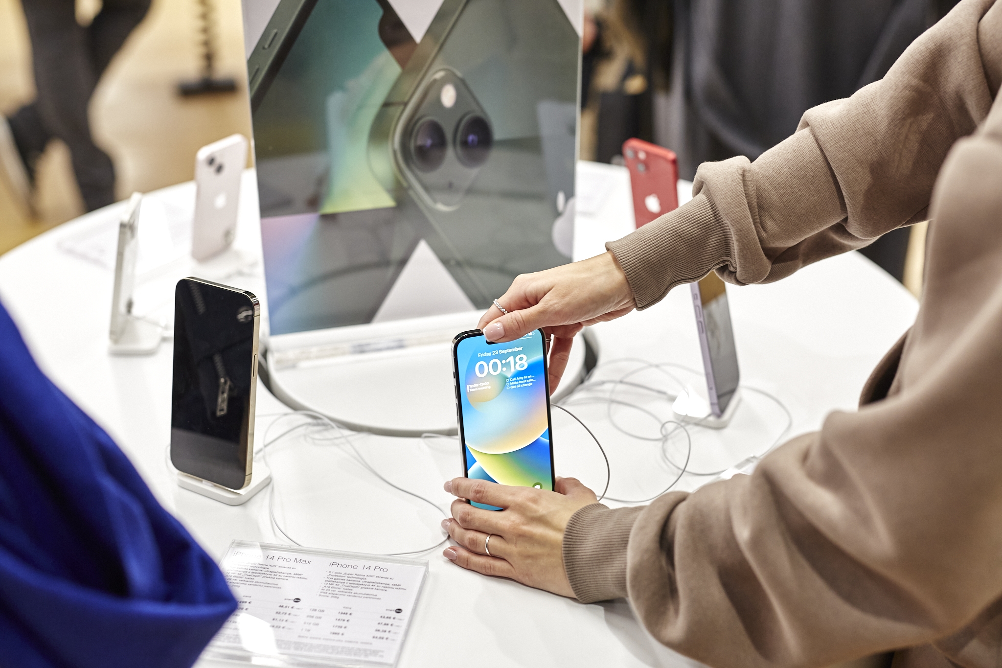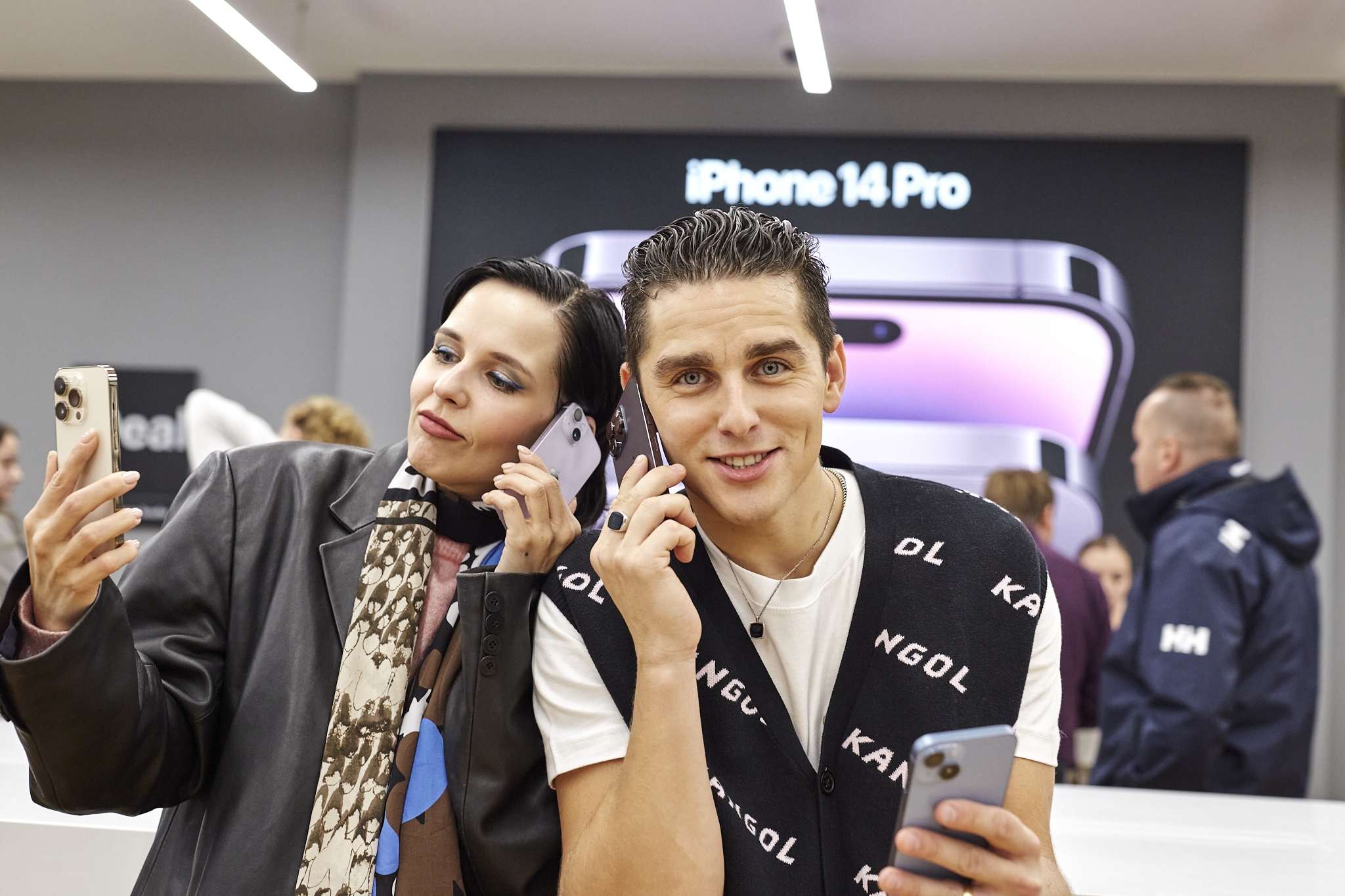 Oficialios prekybos „iPhone 14“ serijos išmaniaisiais startą Lietuvoje paskelbė atlikėjai Donatas Montvydas ir Monika Liu. Jie išpakavo pirmuosius „iPhone 14“ modelius ir renginio svečius supažindino su svarbiausiomis jų naujovėmis.