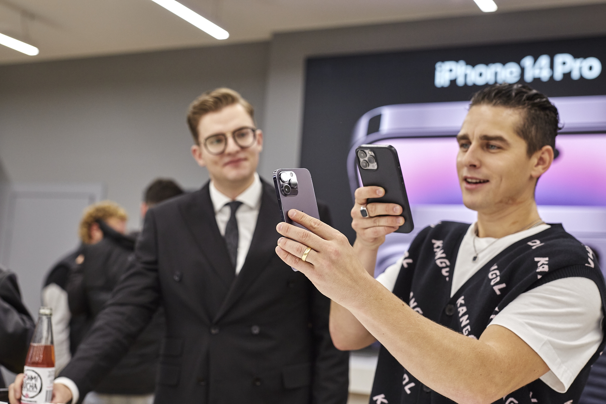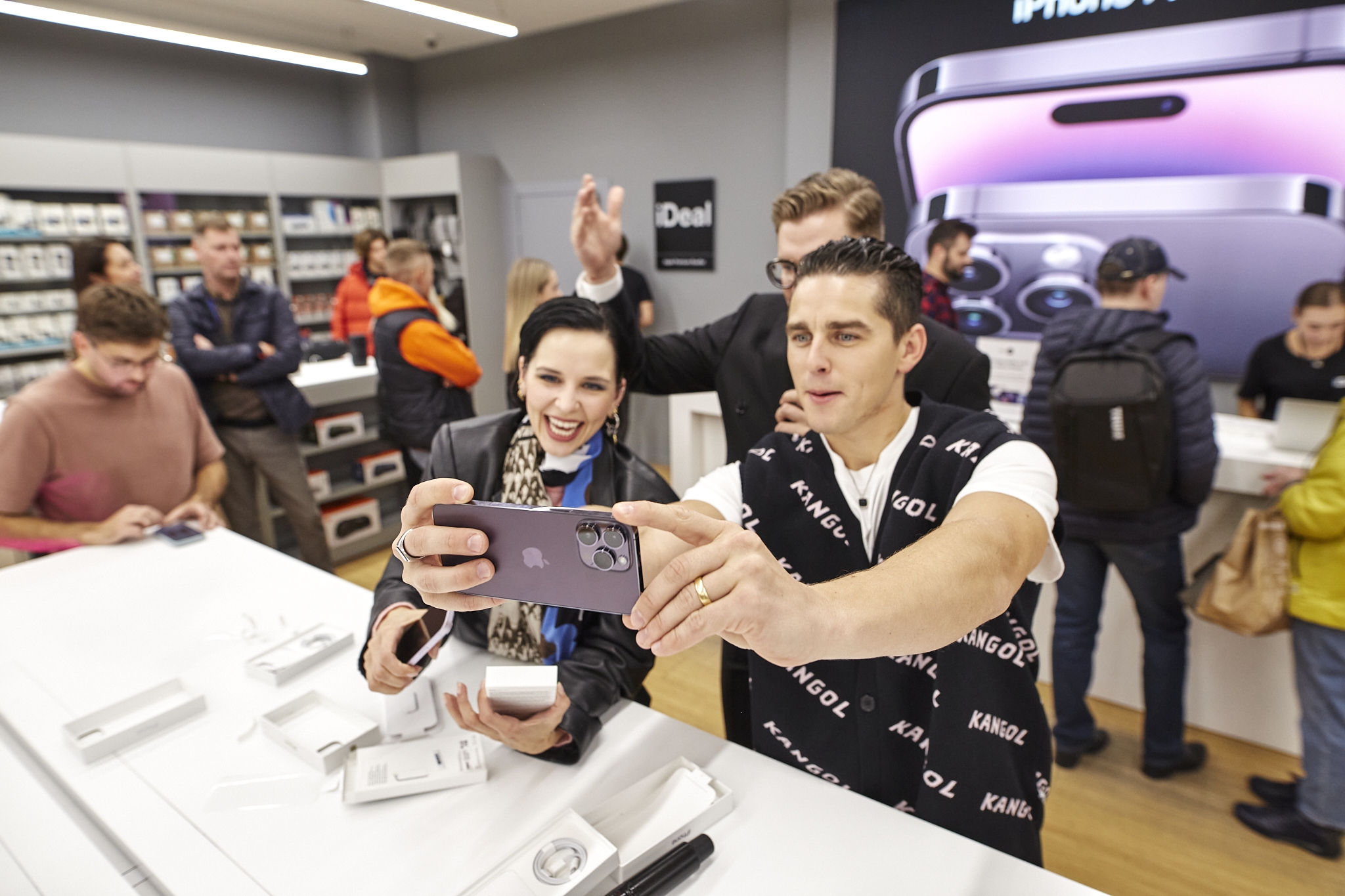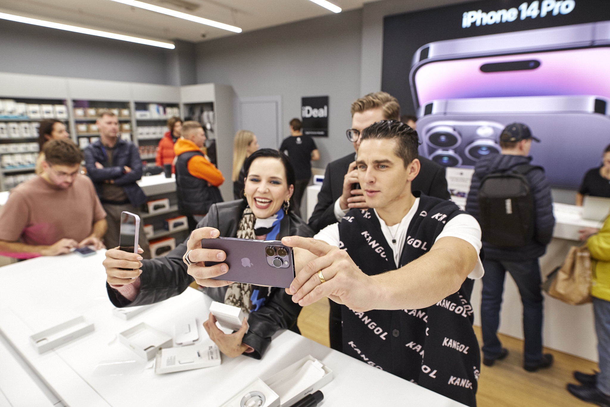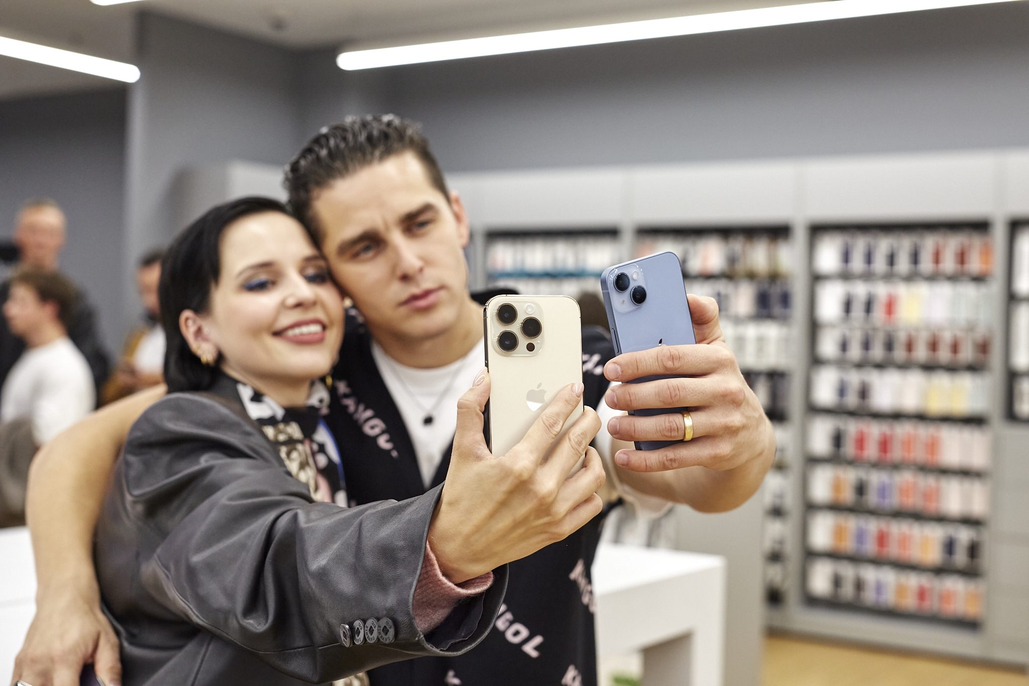 Oficialios prekybos „iPhone 14“ serijos išmaniaisiais startą Lietuvoje paskelbė atlikėjai Donatas Montvydas ir Monika Liu. Jie išpakavo pirmuosius „iPhone 14“ modelius ir renginio svečius supažindino su svarbiausiomis jų naujovėmis.