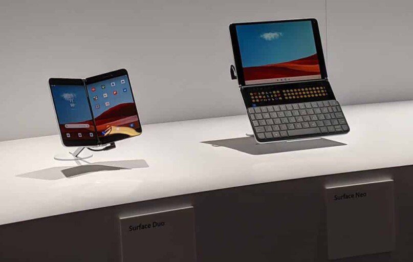 „Microsoft“ ruošia labai įdomų produktą – „Surface Neo“. Ši planšetė turės net du 9 colių ekranus ir 360o vyrius. Šie ekranai taip pat leis dirbti su rašikliu. Prietaiso kiekviena pusė yra 5,6 mm storio, tad sulenkus abu ekranus turėsim 11,2 mm storio prietaisą. Beje įrenginio svoris yra 1,3 kg. Abu ekranus saugos nežinomo tipo „Gorilla“ stiklas. Prie „Surface Neo“ bus galima naudoti klaviatūrą, ji prie korpuso prisijungs magnetų pagalba.