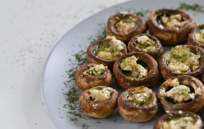 Toks derinys užkandį paverčia sočiu, bet ne sunkiu. Kepant aukštoje temperatūroje pievagrybių kepurėlės išlieka tvirtos, o paviršius maloniai apskrunda. Tai taip pat puikus pasirinkimas tiems, kurie ieško vegetariškų patiekalų, savo skoniu nenusileidžiančių mėsos užkandžiams.