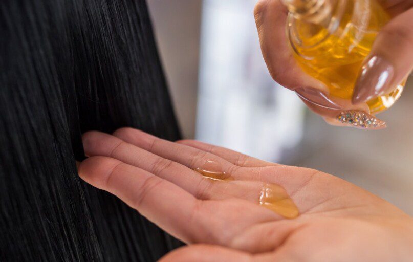 Aliejų taip pat galima tepti per plaukų ilgį ir galiukus. Nedidelį kiekį paskirstykite tarp delnų ir įtrinkite į plaukų vidurinę dalį bei galiukus, vengdami šaknų. Tai gali padėti sumažinti lūžinėjimą, suteikti elastingumo ir natūralaus blizgesio.