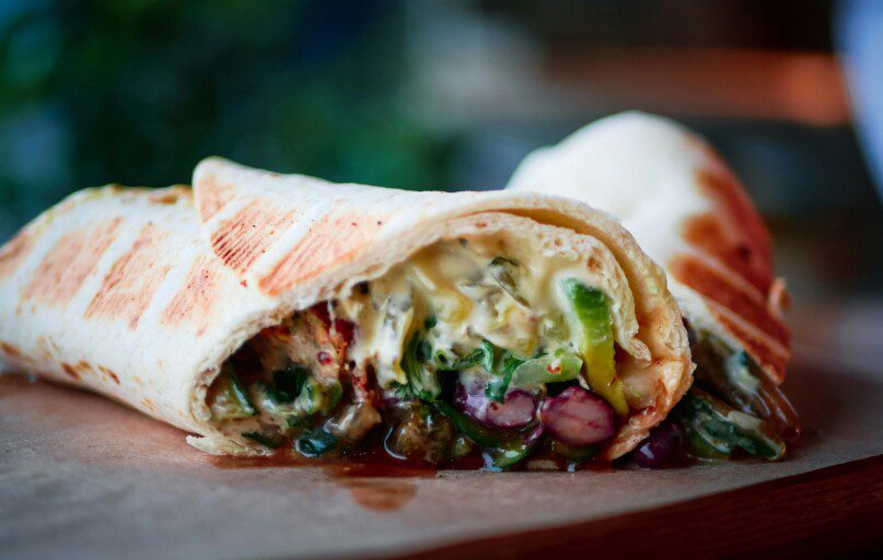 Ant lavašo išdėliojama iškeptas faršas, užpilamas padažas, sudedamos orkaitėje keptos daržovės ir marinuoti svogūnai. Lavašas tvirtai susukamas.