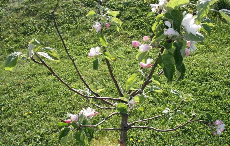 Kad medelis nesiūbuotų nuo vėjo, iš karto po pasodinimo jį pririškite prie kuolų minkšta juosta. Riškite taip, kad kamienas turėtų šiek tiek laisvumo ir galėtų nežymiai nusileisti, kai žemė palaipsniui sės. Prie kamieno iškaskite nedidelę duobutę ir į ją supilkite 2–3 kibirus vandens. Vandeniui įsigėrus, duobutę užpilkite žeme, kompostu arba durpėmis, suformuodami 8–10 cm storio mulčio sluoksnį.