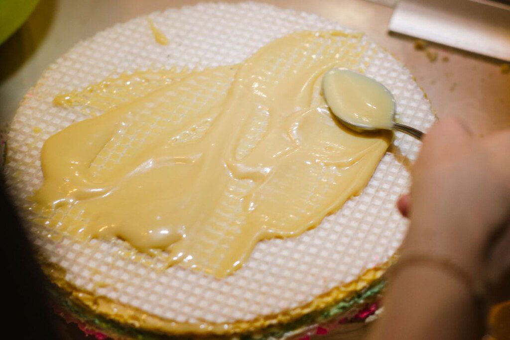 Tortą dėkite į šaldytuvą 2–3 valandoms (dar geriau – per naktį), kad gerai susigertų ir sutvirtėtų.