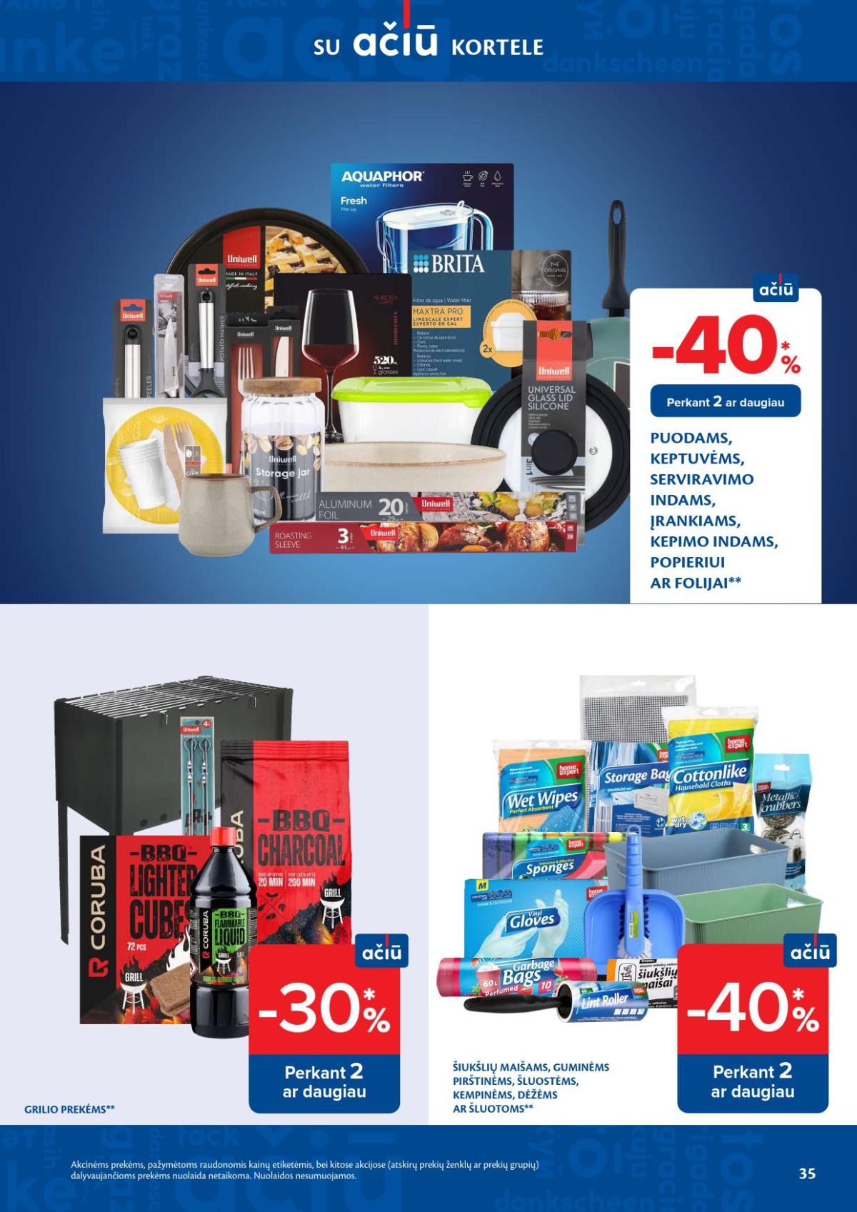 Ryškiausias leidinio akcentas – popieriniai rankšluosčiai „GRITE Blossom XL“, kuriems taikoma viena didžiausių nuolaidų. Su „Ačiū“ kortele jie kainuoja 2,59 Eur vietoje 5,19 Eur, tad nuolaida siekia 50 proc. Tai vienas aiškiausių pavyzdžių, kai akcija aktuali ne tik šventiniam laikotarpiui, bet ir kasdieniam namų ūkiui.