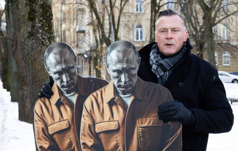 Artėjant ketvirtosioms karo Ukrainoje metinėms, Vilniuje, šalia Okupacijų ir laisvės kovų muziejaus, surengta akcija „Put in Jail“.