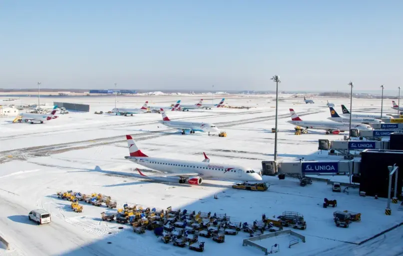 Vienos oro uostas penktadienį laikinai sustabdė veiklą, dėl gausaus snygio buvo atšaukta ir vėlavo daug skrydžių.